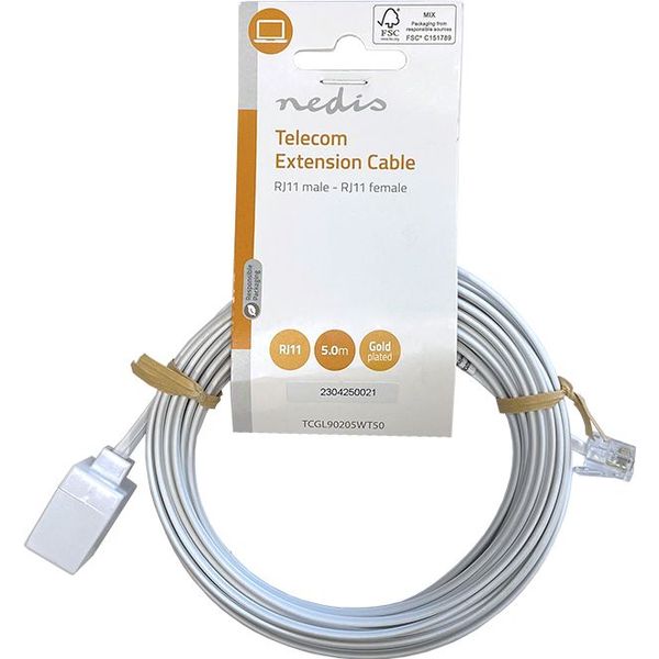 > > > NEDIS TCGL90205WT50 TELECOM EXTENSION CABLE RJ11 MALE - RJ11 FEMALE 5.00M WHITE