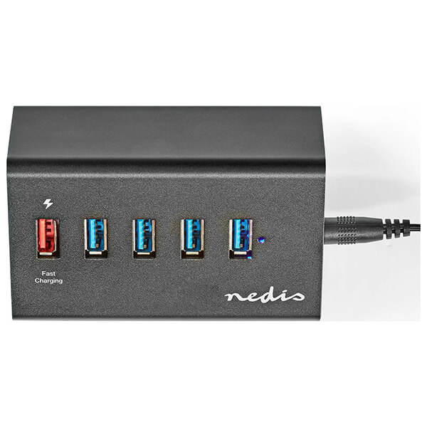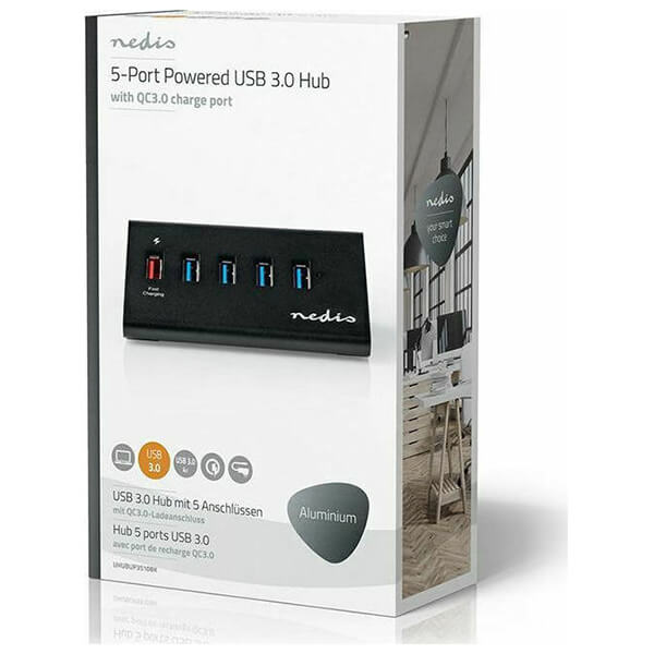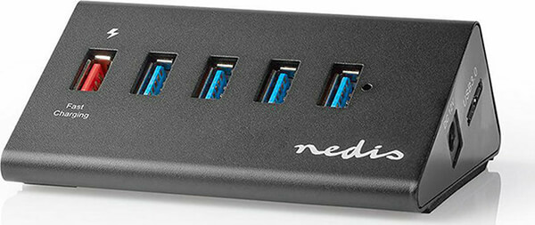USB hub 5 θυρών για να επεκτείνετε τον υπολογιστή με σύνδεση περιφερειακών όπως USB sticks, ποντίκι, αντάπτορα δικτύου USB, κ.α. Eίναι εξοπλισμένο με εξωτερικό τροφοδοτικό που επιτρέπει την υποστήριξη περιφερειακών συσκευών υψηλής ισχύος, όπως σκληρούς δίσκους 2.5''. Χάρη στη θύρα QC3.0 που διαθέτει, μπορείτε να φορτίσετε γρήγορα το smartphone ή το tablet σας. Χαρακτηριστικά Αριθμός θυρών: 5.Τεχνολογία γρήγορης φόρτισης: QC3.0, USB 3.2 Gen1.Ταχύτητα μεταφοράς δεδομένων: έως 5 Gbit/s.Μήκος καλωδίου: 1.45 m.Τάση εισόδου: 12V DC.Τάση εξόδου: 5V DC 9V DC 12V DC.Συμβατότητα: Windows και Mac OS.Τροφοδοσία: 100-240V/50-60Hz (12V / 2A).Υλικό κατασκευής: Αλουμίνιο.Εγγύηση: 2 χρόνια. DOA 7 ημερών