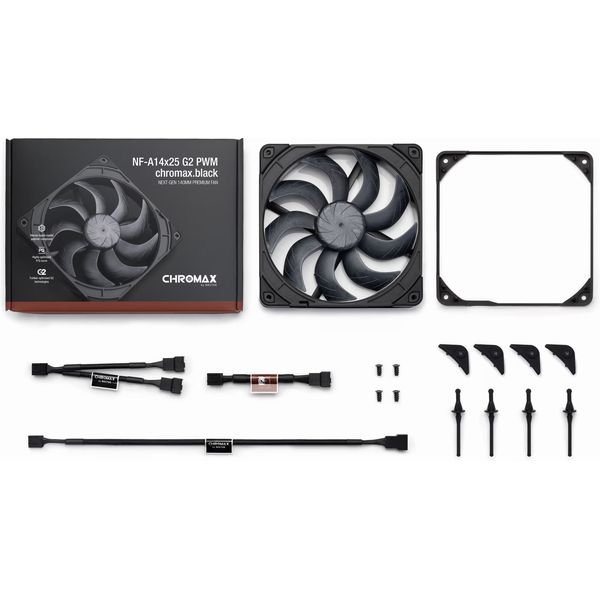 Ï NOCTUA NF-A14x25 G2 PWM chromax.black åßíáé áíåìéóôÞñáò 140 mm ó÷åäéáóìÝíïò ãéá ÷ñÞóç óå êïõôéÜ õðïëïãéóôþí êáé õäñüøõêôá radiators. ÁíÞêåé óôç äåýôåñç ãåíéÜ ôçò óåéñÜò NF-A14 êáé ÷ñçóéìïðïéåß ðôåñùôÞ áðü Sterrox® LCP ìå äéÜêåíï Üêñïõ 0,7 mm. Ç Ýêäïóç chromax.black äéáèÝôåé ðëÞñùò ìáýñï ÷ñùìáôéóìü. Õðïóôçñßæåé Ýëåã÷ï óôñïöþí ìÝóù 4-pin PWM êáé ìðïñåß íá ÷ñçóéìïðïéçèåß óå åöáñìïãÝò airflow Þ static pressure. Åßíáé óõìâáôüò ìå ôõðéêÝò èÝóåéò 140 mm êáé ìðïñåß íá ôïðïèåôçèåß óå êïõôéÜ Þ radiators õäñüøõîçò. - Ôýðïò: ÁíåìéóôÞñáò êïõôéïý / radiator.
