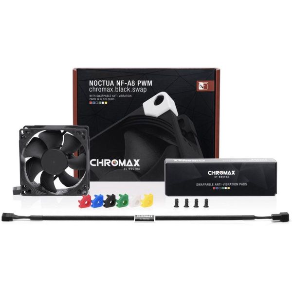 Ο Noctua NF-A8 PWM chromax.black.swap αποτελεί κορυφαία επιλογή στην κατηγορία των premium ανεμιστήρων 80mm, έχοντας λάβει πολυάριθμες βραβεύσεις από διεθνή hardware περιοδικά και ιστοσελίδες. Η έκδοση chromax.black.swap συνδυάζει την εξαιρετικά αθόρυβη λειτουργία και κορυφαία απόδοση ψύξης του NF-A8 με κομψό μαύρο σχεδιασμό, παρέχοντας παράλληλα δυνατότητα εξατομίκευσης χάρη στα αντικραδασμικά pads έξι διαφορετικών χρωμάτων (κόκκινο, λευκό, μπλε, πράσινο, κίτρινο και μαύρο). Τα ειδικά σχεδιασμένα Flow Acceleration Channels και η τεχνολογία πλαισίου AAO (Advanced Acoustic Optimisation) βελτιστοποιούν την απόδοση και μειώνουν δραστικά τον θόρυβο. Το κορυφαίο ρουλεμάν τύπου SSO2 προσφέρει μεγάλη αντοχή και αξιοπιστία, με διάρκεια ζωής άνω των 150.000 ωρών. Είναι ιδανική επιλογή για όσους επιθυμούν την απόλυτη απόδοση ψύξης και αθόρυβη λειτουργία, συνδυασμένες με προσωπικό στυλ στο σύστημά τους.