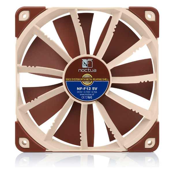 Το NF-F12 5V είναι μια αποκλειστική έκδοση 5V του βραβευμένου, υψηλής ποιότητας NF-F12 ανεμιστήρα 120mm Noctua. Με το πρότυπο πλαίσιο AAO (Advanced Acoustic Optimization) και τα εξελιγμένα μέτρα αεροδυναμικού σχεδιασμού, όπως το σύστημα FocusedFlow, το NF-F12 είναι γνωστό για την εξαιρετική του απόδοση και την εξαιρετική ησυχία της λειτουργίας. Η τεχνολογία Smooth Commutation Drive και η κλάση αναφοράς Noctua SSO2 εγγυώνται εξαιρετική ομαλή λειτουργία και εξαιρετική μακροπρόθεσμη σταθερότητα. Με το ενσωματωμένο καλώδιο προσαρμογέα USB, προσαρμογέα OmniJoin και εγγύηση κατασκευαστή 6 ετών, το NF-F12 5V είναι μια εξαιρετική επιλογή για απαιτητικές εφαρμογές 5V. Μέγεθος: 120x120x25 mm.Μέγεθος οπής τοποθέτησης: 105x105 mm.Σύνδεση: 3-pin.Μήκος καλωδίου: 20cm + 30cm NA-EC1 extension cable.Στήριξη: SSO2.Ταχύτητα περιστροφής: 1500 RPM.Ελάχιστη ταχύτητα περιστροφής: 400 RPM.Ροή αέρα: 93.4 m³/h.Θόρυβος: 22.4dB(A).Στατική πίεση: 2.61 mm H?O.Μέγιστη ισχύς εισόδου: 0.75 W.Μέγιστο ρεύμα εισόδου: 0,15 A.Τάση λειτουργίας: 5 V.MTTF: > 150.000 h.Εγγύηση: 6 χρόνια. DOA 7 ημερών