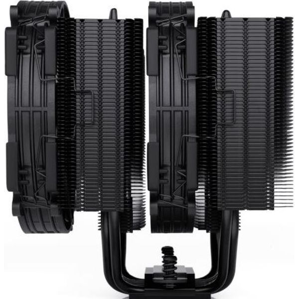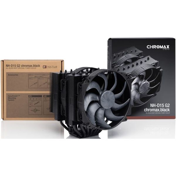 Η NOCTUA NH-D15 G2 chromax.black είναι η ολοκαίνουργια, δεύτερης γενιάς έκδοση της εμβληματικής dual-tower αερόψυκτρας της Noctua, σχεδιασμένη για κορυφαία απόδοση ψύξης και υποδειγματικά χαμηλό θόρυβο, αυτή τη φορά σε πλήρως μαύρο (all-black) φινίρισμα. Αποτελεί τη νέα ναυαρχίδα της εταιρείας και θέτει νέο σημείο αναφοράς στην κατηγορία των premium air coolers. Η NH-D15 G2 βασίζεται σε πλήρως ανασχεδιασμένο heatsink με 8 heatpipes και έως 20% μεγαλύτερη επιφάνεια απαγωγής θερμότητας, επιτρέποντας τη διαχείριση πολύ υψηλών θερμικών φορτίων. Εξοπλίζεται με δύο NF-A14x25r G2 PWM ανεμιστήρες τελευταίας γενιάς, με ελαφρύ speed offset ώστε να αποφεύγονται ανεπιθύμητα ακουστικά φαινόμενα (beat frequencies), προσφέροντας εξαιρετικά ομαλή και αθόρυβη λειτουργία ακόμη και σε πλήρες φορτίο. Η έκδοση chromax.black διαθέτει μαύρη επίστρωση στο heatsink και μαύρους ανεμιστήρες, προσφέροντας ένα διακριτικό, stealth αισθητικό αποτέλεσμα που ταιριάζει άψογα σε σύγχρονα builds. Συμπληρώνεται από το εξελιγμένο SecuFirm2+ mounting system με Torx βίδες, την κορυφαία θερμική πάστα NT-H2 και πλήρη υποστήριξη πολλαπλών socket, συμπεριλαμβανομένων των σύγχρονων Intel και AMD πλατφορμών (με AM5 offset mounting για ακόμη καλύτερη απόδοση). - Τύπος: Dual-Tower CPU Air Cooler.