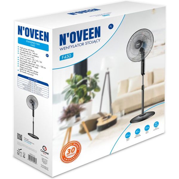 Ο ανεμιστήρας ορθοστάτης NOVEEN F450 16" είναι ιδανικός για την καλοκαιρινή δροσιά σε κάθε χώρο. Με ισχύ 45W και 3 ταχύτητες λειτουργίας, εξασφαλίζει δυνατή και αθόρυβη ροή αέρα, χάρη στη μέγιστη στάθμη θορύβου των 55dB. Η περιστροφή 90° και η δυνατότητα ρύθμισης ύψους από 105 έως 130 cm τον καθιστούν απόλυτα ευέλικτο, ενώ η σταθερή στρογγυλή βάση και το σύστημα προστασίας στις φτερωτές προσφέρουν ασφάλεια και σταθερότητα. Διαθέτει χρονοδιακόπτη 7,5 ωρών και κομψό σχεδιασμό, ιδανικό για οικιακή ή επαγγελματική χρήση.