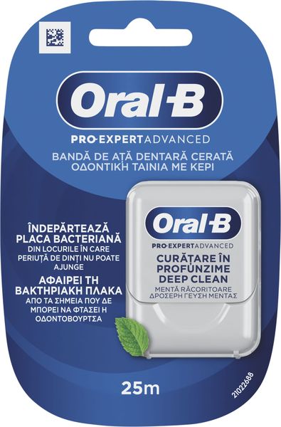 ORAL-B στην κατηγορία ΟΔΟΝΤΙΚΑ ΝΗΜΑΤΑ Οδοντική ταινία Oral-B Pro-Expert Advanced για καθαρισμό επαγγελματικού επιπέδου. Η ανάγλυφη οδοντική ταινία προσφέρει βαθύ καθαρισμό με φρέσκια γεύση μέντας. Καθαρίζει λεπτομερώς ανάμεσα στα δόντια, αφαιρώντας την πλάκα και τα σωματίδια τροφίμων.