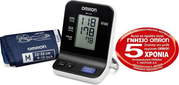 Απλή χρήση & τεχνολογία αιχμής Με ένα μόνο κουμπί, η χρήση του HBP-1120 είναι εξαιρετικά εύκολη και άμεση, ενώ η τεχνολογία ανίχνευσης αρρυθμίας προσφέρει επιπλέον διαγνωστική ακρίβεια. Η συσκευή ενσωματώνει λειτουργία διακοπής λόγω κίνησης: εάν εντοπιστεί κίνηση του σώματος κατά τη μέτρηση, η εκτόνωση σταματάει για 5 δευτερόλεπτα, βελτιώνοντας την αξιοπιστία του αποτελέσματος.