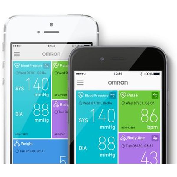 Omron connect, διαθέσιμη σε iPhone και Android. Μέσω της εφαρμογής μπορείτε να παρακολουθείτε τις μετρήσεις σας σε διαγράμματα και να τις μοιράζεστε εύκολα με τον ιατρό σας, διασφαλίζοντας ολοκληρωμένη παρακολούθηση της πίεσης.