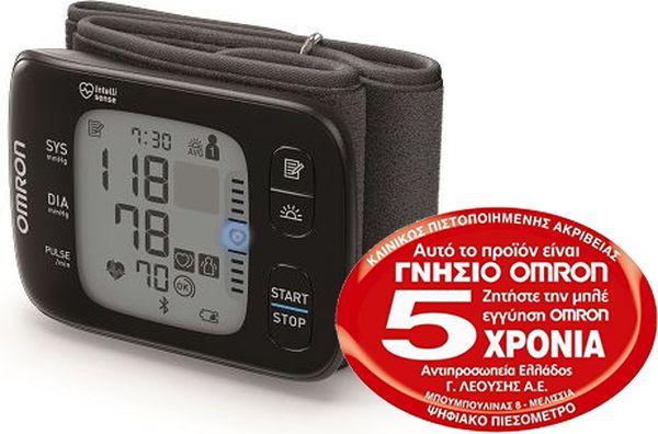 OMRON στην κατηγορία ΠΙΕΣΟΜΕΤΡΑ Το OMRON RS7 Intelli IT (HEM-6232T-E) είναι ένα έξυπνο πιεσόμετρο καρπού, ιδανικό για απαιτητικούς χρήστες που επιθυμούν ακριβή και πλήρη παρακολούθηση της αρτηριακής πίεσης, με εύκολη διασύνδεση με το κινητό τους. Είναι κλινικώς πιστοποιημένο από την Ευρωπαϊκή Εταιρεία Υπέρτασης και κατάλληλο και για υπέρβαρα άτομα, προσφέροντας αξιόπιστες μετρήσεις σε κάθε περίπτωση.