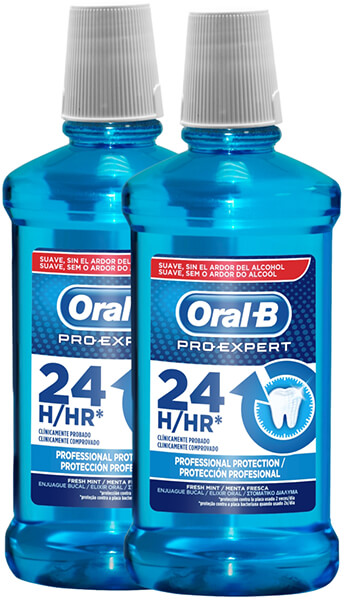 Το στοματικό Διάλυμα της Oral-B, Expert Professional Protection, αποτελεί όπλο κατά της δυσάρεστης αναπνοής και πολύτιμο βοήθημα στην υγιεινή του στόματος. Με ευχάριστη γεύση μέντας, αφήνει μια αίσθηση φρεσκάδας και καθαριότητας στο στόμα. -Το διάλυμα παρέχει 24ωρη προστασία, καταπολεμώντας τον σχηματισμό της πλάκας, βοηθώντας στην πρόληψη της τερηδόνας και προστατεύοντας τα ούλα. -Αποτρέπει την εμφάνιση πέτρας και τη διάβρωση του σμάλτου. -Διατηρεί την καθαριότητα σε δυσπρόσιτες περιοχές και σκοτώνει τα μικρόβια. -Φρεσκάρει την αναπνοή με μια ευχάριστη γεύση μέντας. -Για την χρήση γεμίστε ένα καπάκι μέχρι την γραμμή των 20 ml, κάντε στοματική πλύση για 30 δευτερόλεπτα και μετά πτύστε. Κάντε χρήση δυο φορές την ημέρα μετά το βούρτσισμα. -Κατάλληλο για παιδιά άνω των 6 ετών. Χαρακτηριστικά Τύπος: Στοματικό διάλυμα.Χαρακτηριστικά: δεν περιέχει οινόπνευμα, γεύση μέντας, κλινικά αποδεδειγμένο, προστατεύει από: τερηδόνα, πλάκα, προβλήματα των ούλων, ευαισθησία, κηλίδες, δυσάρεστη αναπνοή, πέτρα και διάβρωση του σμάλτου.Ποσότητα: 2 x 500ml.Τεμάχια: 2.OEM: 81691323