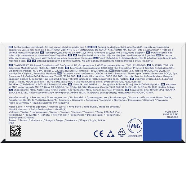 - Τύπος: Ηλεκτρική οδοντόβουρτσα με αισθητήρα πίεσης