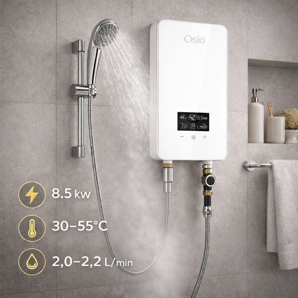 Ο Osio OHF-2880W είναι ηλεκτρικός ταχυθερμαντήρας για επιτοίχια εγκατάσταση στο μπάνιο, που προσφέρει στιγμιαίο ζεστό νερό χωρίς δοχείο αποθήκευσης. Με ισχύ 8,5 kW και ψηφιακή οθόνη/πλήκτρα αφής ρυθμίζεις εύκολα τη θερμοκρασία 3055°C και βλέπεις σε πραγματικό χρόνο την ένδειξη. Το περίβλημα με βαθμό στεγανότητας IPX4, οι δικλείδες υπερθέρμανσης και η λειτουργία από 2,02,2 L/λεπτό διασφαλίζουν ασφαλή και σταθερή παροχή, ενώ η συνοδευτική βαλβίδα ρύθμισης ροής σε βοηθά να πετυχαίνεις τη θερμοκρασία που θέλεις κάθε εποχή. - Ισχύς: 8,5 kW Τάση: AC 220240 V ~ 50/60 Hz