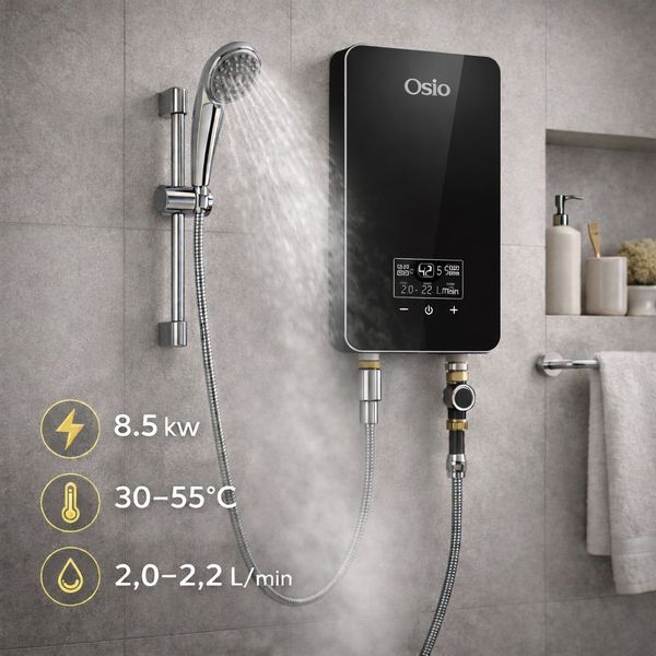 Ο Osio OHF-2890B είναι ηλεκτρικός ταχυθερμαντήρας για επιτοίχια εγκατάσταση στο μπάνιο, που προσφέρει στιγμιαίο ζεστό νερό χωρίς δοχείο αποθήκευσης. Με ισχύ 8,5 kW και ψηφιακή οθόνη/χειριστήρια αφής ρυθμίζεις εύκολα τη θερμοκρασία 3055°C και βλέπεις την ένδειξη σε πραγματικό χρόνο. Το περίβλημα σε μαύρο χρώμα με βαθμό στεγανότητας IPX4, μαζί με τις δικλείδες υπερθέρμανσης και υπερπίεσης, εξασφαλίζουν ασφαλή λειτουργία. Χάρη στη βαλβίδα ρύθμισης ροής (περιλαμβάνεται) προσαρμόζεις την παροχή ώστε να πετυχαίνεις τη θερμοκρασία που θέλεις κάθε εποχή. - Ισχύς: 8,5 kW Τροφοδοσία: AC 220240 V ~ 50/60 Hz