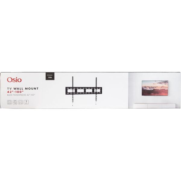 Η επιτοίχια βάση τηλεόρασης Osio OSMA-1386 είναι η ιδανική λύση για όσους αναζητούν απόλυτη ασφάλεια και σιγουριά στη στήριξη ακόμα και των μεγαλύτερων τηλεοράσεων. Με δυνατότητα αντοχής έως και 100 κιλά και συμβατότητα με οθόνες από 42 έως 100 ίντσες, εξασφαλίζει στιβαρή εγκατάσταση και σταθερότητα χωρίς τρεμόπαιγμα ή κίνδυνο μετακίνησης. Ο λεπτός σχεδιασμός της, με απόσταση μόλις 25 mm από τον τοίχο, προσφέρει μινιμαλιστική εμφάνιση και αφήνει την τηλεόραση να «αγκαλιάζει» τον τοίχο, δημιουργώντας ένα καθαρό και κομψό αποτέλεσμα που ταιριάζει σε κάθε χώρο, από το σπίτι μέχρι επαγγελματικούς χώρους και αίθουσες παρουσιάσεων.