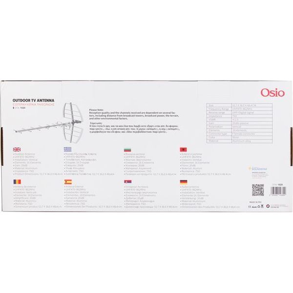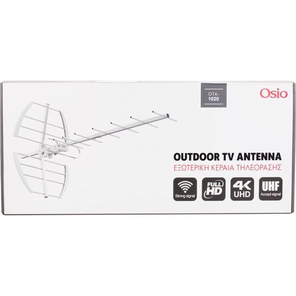 Κεραία τηλεόρασης εξωτερικού χώρου OTA-1020. Είναι σχεδιασμένη να καλύπτει τη ζώνη UHF 470 έως και 862MHz και προσφέρει ισχυρό σήμα ανάλυσης εικόνας Full HD αλλά και Ultra HD, για ακόμα πιο υψηλή ευκρίνεια. Αυτή η κεραία προσφέρει εξαιρετική απόδοση με κέρδος 20 dBi, επιτρέποντας την αποτελεσματική λήψη και εκπομπή σημάτων. Eπιπλέον, η παθητική της σχεδίαση εξασφαλίζει αξιόπιστη λειτουργία, χωρίς την ανάγκη πρόσθετης ενίσχυσης. Μπορείτε να την τοποθετήσετε κατακόρυφα και να τη συναρμολογήσετε γρήγορα και εύκολα, χρησιμοποιώντας τα εργαλεία που περιέχει η συσκευασία. Τέλος, η κεραία διαθέτει ανθεκτική κατασκευή από αλουμίνιο, που προσφέρει εξαιρετική αντοχή στις καιρικές συνθήκες και παρατείνει τη διάρκεια ζωής της.
