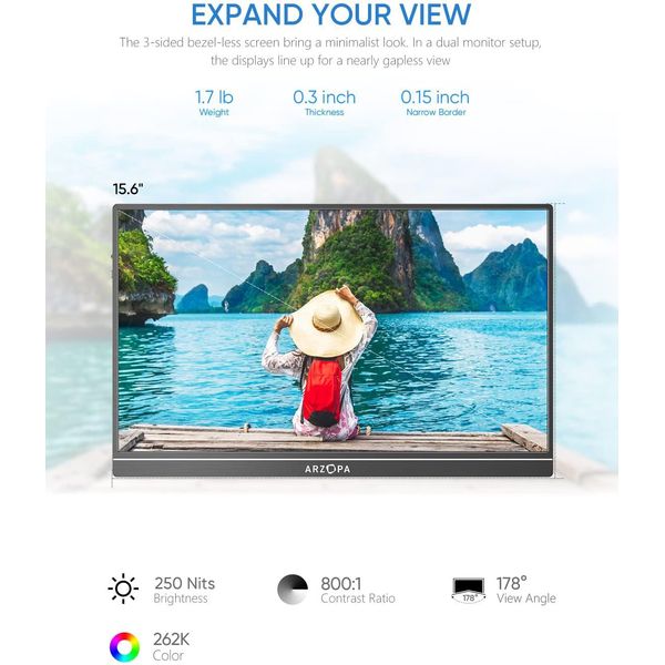 Η ιδανική λύση για όσους θέλουν φορητότητα, ευκολία και μέγιστη παραγωγικότητα. Η ARZOPA 15.6" προσφέρει Full HD ποιότητα εικόνας, λειτουργία Plug & Play και ευρεία συμβατότητα με laptop, κινητά, κονσόλες και περισσότερα - όλα σε μια εξαιρετικά ελαφριά και λεπτή συσκευή.
