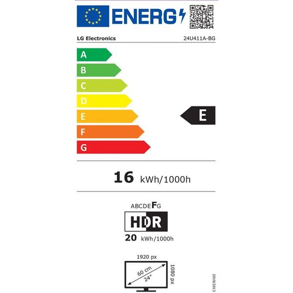 Hλεκτρική κατανάλωση (HDR): 20 kWh / 1000h.