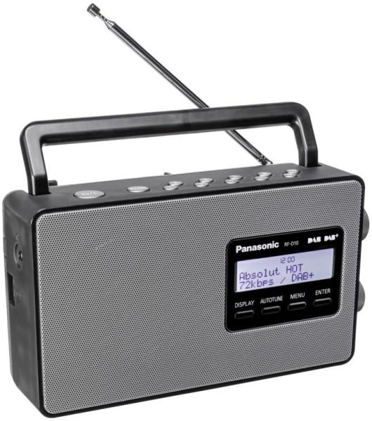 Φορητό ραδιόφωνο FM από την Panasonic. Ζώνες συχνοτήτων: FM: 87,5 - 108MHz.Ηχείο: 10 εκ., 4Ω.5 Προεπιλογές ισοσταθμιστή: Επίπεδο, Βαρέα, Ελαφρά, Καθαρά, Φωνητικά.Λειτουργίες συντονισμού: Αυτόματη / Χειροκίνητη.Ψηφιακή Μετάδοση Ήχου (DAB): DAB/DAB+.Κεραία: τύπου "μαστίγιο", 67 εκ.Ισχύς εξόδου: 2W (RMS).Επίπεδο μπαταρίας: Ειδική ένδειξη.Ρολόι: Αυτόματη ρύθμιση ώρας.Μέγεθος οθόνης: 74 x 21 χιλιοστά.Απαιτήσεις ισχύος: 230-240 V, 50Hz.Συνοδευτικά: Καλώδιο τροφοδοσίας.Τροφοδοσία από μπαταρία: 6V (4 μπαταρίες).Κατανάλωση (κατά προσέγγιση): Σε λειτουργία:7W, σε αναμονή:0.6W.Διαστάσεις (ΠxYxΒ): 251 x 138 x 91 χιλ.Βάρος: 1000 γρ.(χωρίς τις μπαταρίες), 1300 γρ.(με τις μπαταρίες).Εγγύηση: 2 χρόνια. DOA 7 ημερών
