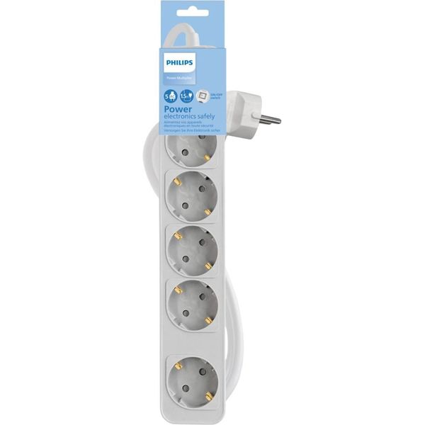 PHILIPS CHP2154W/GRS ΠΟΛΥΠΡΙΖΟ 5 ΘΕΣΕΩΝ ΜΕ ΔΙΑΚΟΠΤΗ & ΠΑΙΔΙΚΗ ΠΡΟΣΤΑΣΙΑ ΚΑΛΩΔΙΟ 15 M ΛΕΥΚΟ