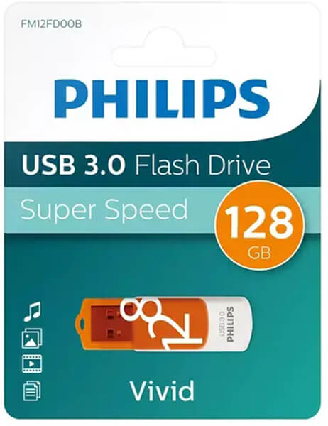 Η χρωματιστή μονάδα flash USB της Philips vivid edition σάς επιτρέπει να αποθηκεύετε και να μοιράζεστε εύκολα όλα τα αρχεία πολυμέσων σας, όπως φωτογραφίες, μουσική, βίντεο και τα προσωπικά σας δεδομένα. -Χωρητικότητα αποθήκευσης 128 GB: Αρκετή χωρητικότητα για να αποθηκεύσετε περισσότερες από 36.000 αγαπημένες σας φωτογραφίες ή 22.000 αρχεία μουσικής MP3. -Σούπερ ταχύτητα USB 3.0. Γρήγορη μεταφορά δεδομένων και δημιουργία αντιγράφων ασφαλείας αρχείων, φωτογραφιών και βίντεο στον υπολογιστή σας. -Μια ελκυστική ένδειξη LED σάς δείχνει ότι η μονάδα είναι σωστά συνδεδεμένη και λειτουργεί. -Το προστατευτικό καπάκι είναι ενσωματωμένο στη σχεδίαση του προϊόντος, έτσι θα παραμένει πάντα συνδεδεμένο στο USB stick. Χωρητικότητα: 128 GB.USB: High Speed USB 3.0.Απαιτήσεις συστήματος: Windows XP και νεότερη έκδοση, MAC OS 9.0 και νεότερη έκδοση, Linux 2.4.0 και νεότερη έκδοση.Διαστάσεις προϊόντος (Π x Υ x Β): 1.7 x 5.8 x 0.8 cm.Βάρος: 0.008 kg.Χρώμα: Πορτοκαλί.Εγγύηση: 2 χρόνια. DOA 7 ημερών