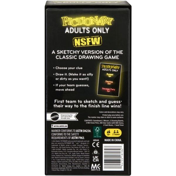 MATTEL στην κατηγορία ΕΠΙΤΡΑΠΕΖΙΑ To Pictionary Adults Only είναι το πιο ξεκαρδιστικό επιτραπέζιο για ενήλικες, όπου πρέπει να σχεδιάσεις τρελά σκίτσα για να βρουν οι άλλοι τις όχι και τόσο αθώες λέξεις κλειδιά. Διαλέγεις ποια πιπεράτη λέξη θα ζωγραφίσεις και μπορείς να το κάνεις όσο πιο χαζό, geeky ή βρώμικο θες. Αν η ομάδα σου μαντέψει σωστά, προχωράτε στο ταμπλό! Το παιχνίδι είναι το τέλειο mix ανάμεσα σε αλητεία και χαβαλέ. Ιδανικό για μια γεμάτη γέλια βραδιά με παρέα. Συχνά, το να σπάσεις τη λέξη σε μικρές εικόνες είναι πιο εύκολο και πιο αστείο! Όποιος φτάσει πρώτος στον τερματισμό κερδίζει σε αυτήν τη sketchy (κυριολεκτικά και μεταφορικά) εκδοχή του κλασικού παιχνιδιού ζωγραφικής.