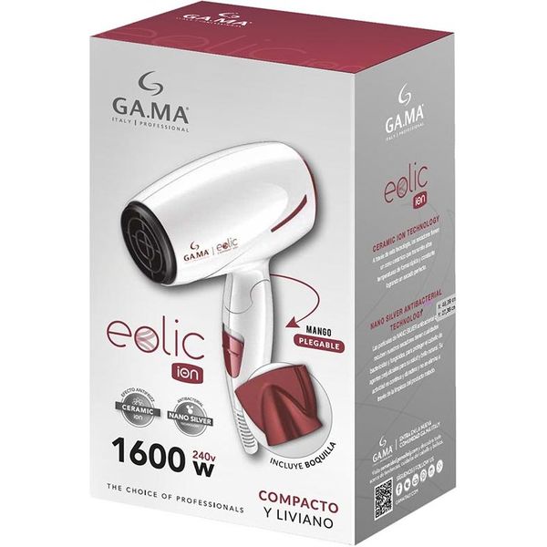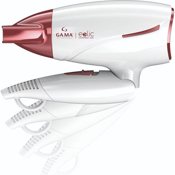 Σεσουάρ ταξιδίου 1600W από την GA.MA. Είναι ελαφρύ και compact, ενώ διαθέτει και αναδιπλούμενη λαβή ώστε να αποθηκεύεται και να μεταφέρεται εύκολα, για χρήση on-the-go. Επιπλέον, οι θερμαινόμενες επιφάνειές του είναι ενισχυμένες με τεχνολογία Ceramic Ion και διαθέτει δυνατή ροή αέρα 75 m³/h. Έτσι, υπόσχεται γρήγορο και ομοιόμορφο στέγνωμα και styling, με μαλλιά λαμπερά και υγιή, χωρίς ίχνος φριζαρίσματος. Στη συσκευασία περιλαμβάνεται στόμιο 7.5 x 1.8 cm.