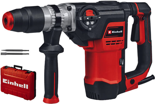 EINHELL στην κατηγορία ΔΡΑΠΑΝΑ-ΚΑΤΣΑΒΙΔΙΑ Το πνευματικό περιστροφικό πιστολέτο Einhell TE-RH 40 3F είναι ένας ισχυρός βοηθός με ισχύ 1.050 W με τρεις βασικές λειτουργίες για εργασίες αποκατάστασης και ανακαίνισης: διάτρηση κρούσης και σμίλη με / χωρίς κλείδωμα. Το πνευματικό περιστροφικό πιστολέτο παρέχει ισχύ κρούσης έως και 10 joules στο εργαλείο και με τον πνευματικό μηχανισμό κρούσης παρέχει πολύ καλή πρόσφυση προς τα εμπρός για δυνατότητα διάτρησης έως και 40 mm σε σκυρόδεμα. Υπάρχει ένας πρακτικός διακόπτης θέσης για όλες τις λειτουργίες, ενώ οι μεγάλες μαλακές επιφάνειες λαβής εξασφαλίζουν σταθερό κράτημα και επομένως ασφαλή χειρισμό. Το πνευματικό περιστροφικό πιστολέτο είναι εξοπλισμένο με κλείδωμα συνεχούς λειτουργίας για άνετη και φιλική προς τον χρήστη λειτουργία και τσοκ SDS-max με ημιαυτόματη λειτουργία. Παρ όλη την ισχύ, η ηλεκτρονική ρύθμιση στροφών διασφαλίζει ότι το εργαλείο μπορεί να προσαρμοστεί σε κάθε συγκεκριμένο υλικό και εφαρμογή. Το προϊόν διατίθεται πλήρες με βελόνι και καλέμι σε βαλίτσα μεταφοράς και αποθήκευσης E-Box M55.