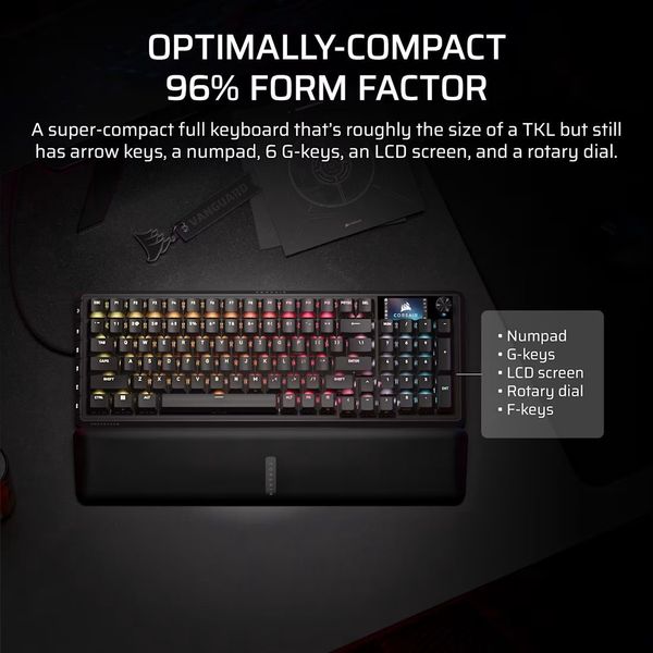 Τύπος: Gaming πληκτρολόγιο με μεμβρανικούς διακόπτες. Διάταξη: Tenkeyless (χωρίς αριθμητικό). Φωτισμός: RGB με υποστήριξη CORSAIR iCUE. Ρυθμός απόκρισης: 1000Hz. Key Rollover: 12-Key Selective (12KRO). Αντοχή σε υγρά: Έως 300ml. Συνδεσιμότητα: Ενσύρματο μέσω USB 2.0 Type-A. Έλεγχος media: Αφιερωμένα πλήκτρα media & volume. WIN Lock: Πλήκτρο αποκλεισμού για αποφυγή ατυχημάτων. Μνήμη: Ενσωματωμένη για αποθήκευση ρυθμίσεων. Συμβατότητα: Windows 10, macOS 10.15. Βάρος: 0.843 kg. Χρώμα: RGB Black. Εγγύηση: 2 Χρόνια. DOA 7 ημερών