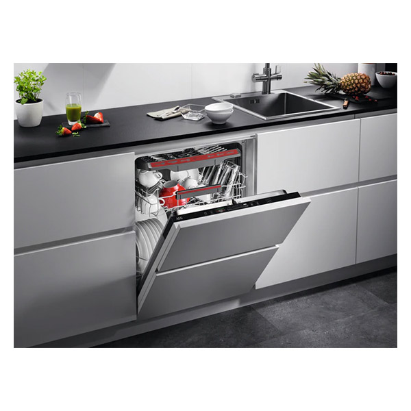 Δελτίο προιόντοςΕντοιχιζόμενο πλυντήριο πιάτων από την AEG με χωρητικότητα 14 σερβίτσια. Ο καινοτόμος βραχίονας ψεκασμού του πλυντηρίου παρέχει έως και 3 φορές καλύτερη κάλυψη, εξασφαλίζοντας καθαρισμό από άκρη σ άκρη. -Ακόμα και τα στριμωγμένα ή τα μεγαλύτερα πιάτα καθαρίζονται σωστά με το σύστημα SatelliteClean. Ο καινοτόμος βραχίονας ψεκασμού εγγυάται ότι το νερό φτάνει παντού. Με έως και τρεις φορές καλύτερη κάλυψη ψεκασμού προσφέρει εκπληκτικά αποτελέσματα σε κάθε επιφάνεια. -Το συρτάρι MaxiFlex είναι σχεδιασμένο να χωράει μαχαιροπίρουνα και μαγειρικά σκεύη διαφορετικών μεγεθών και σχημάτων. Με τα εύκαμπτα διαχωριστικά και το μεγιστοποιημένο βάθος, η κάθε πλύση είναι ρυθμιζόμενη. -Επιλέγοντας το πρόγραμμα Ecometer στην οθόνη αφής, η ένδειξη σας καθοδηγεί στο πιο βιώσιμο πρόγραμμα για εξοικονόμηση ενέργειας και νερού με την εμφάνιση ενδεικτικών πράσινων γραμμών. -Το πλυντήριο πιάτων έχει έναν έξυπνο τρόπο να σας ενημερώνει με ακρίβεια για την κατάσταση πλύσης των πιάτων σας. Η τεχνολογία προβολής δέσμης φωτός στο δάπεδο προβάλλει ένα κόκκινο φως όταν το πλυντήριο βρίσκεται σε λειτουργία, ενώ όταν τελειώσει το χρώμα γίνεται πράσινο. -Το σύστημα AirDry προσφέρει έως και 3 φορές καλύτερη απόδοση στεγνώματος σε σύγκριση με κλειστά συστήματα. Η πόρτα ανοίγει αυτόματα στο τέλος της φάσης στεγνώματος και ο αέρας κυκλοφορεί μέσα στο μηχάνημα. Τα πιάτα βγαίνουν τελείως στεγνά. Χαρακτηριστικά Τύπος: Εντοιχιζόμενο.Εγκατάσταση: Πλήρους εντοιχισμού.Χωρητικότητα: 14 σερβίτσια.Ενεργειακή κλάση: D.Σύστημα στεγνώματος: Τεχνολογία AirDry.Ισχύς: 1950 W.Θερμοκρασίες: 4.Κατανάλωση ενέργειας ανά 100 κύκλους: 85 kWh.Επίπεδα Θορύβου: 44 dB.Δείκτης απόδοσης καθαρισμού: 1.121.Δείκτης απόδοσης στεγνώματος: 1.061.Κατανάλωση νερού ανά κύκλο: 10.5 lt.Προγράμματα: 160 λεπτά, 60 λεπτά, 90 λεπτά, AUTO Sense, ECO, Φροντίδα πλυντηρίου, Γρήγορο 30 λεπτά.Κινητήρας: Inverter.Επιλογή καθυστέρησης έναρξης: 1-24 ώρες.’λλα χαρακτηριστικά: ένδειξη υπολειπόμενου χρόνου, Beam-on-Floor, GlassCare, Machine Care, επιλεγμένο πρόγραμμα, συμπλήρωση λαμπρυντικού, συμπλήρωση αλατιού, XtraPower.Διαστάσεις: 818 x 596 x 550 mm.Εντοιχισμός Υ(min/max)xΠxΒ (mm): 820/900 x 600 x 550 mm.Εγγύηση: 2 χρόνια.