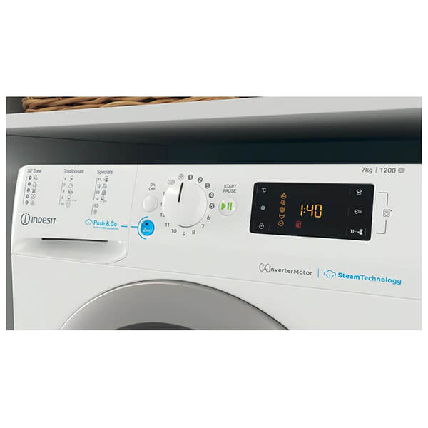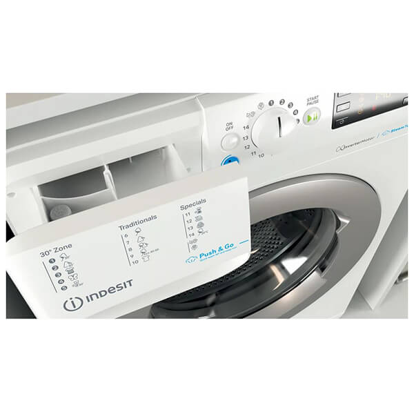 Push&Go Η τεχνολογία Push&Go αφαιρεί αποτελεσματικά περισσότερους από 20 διαφορετικούς λεκέδες σε 45 λεπτά χωρίς προεπεξεργασία, με ένα μόνο πάτημα ενός κουμπιού. Μοτέρ inverter Χάρη στη βελτιωμένη χωρητικότητα και την ειδική επεξεργασία ινών, ο κινητήρας inverter αυξάνει την απόδοση του μηχανήματος για εξοικονόμηση ενέργειας. Αποτελεσματική χρήση των πόρων (Water Balance Plus) Αυτό το καινοτόμο πρόγραμμα έχει αναπτυχθεί για να επιτρέψει τη δραματική εξοικονόμηση νερού, ενέργειας και χρόνου. Με μια μικρή ποσότητα ρούχων, μπορεί να εξοικονομήσει έως και 70% νερό και 50% ενέργεια με 35% ταχύτερο κύκλο. Καθυστερημένη έναρξη Αυτό το πρόγραμμα σάς επιτρέπει να προγραμματίζετε άνετα τον κύκλο πλύσης για να εκτελεστεί αργότερα ή τη νύχτα. Απλώς ρυθμίστε το πρόγραμμα και αφήστε τα υπόλοιπα στο πλυντήριο σας. Αυτόματο πλύσιμο (Autoclean) Καθαρίζει το πλυντήριο χωρίς να χρειάζεται απορρυπαντικά με το πάτημα ενός κουμπιού, ώστε να μην ασχολείστε με αυτό και να προστατεύσετε το πλυντήριο. Πρόγραμμα για κουβέρτες - παπλώματα Αυτό το πρόγραμμα έχει αναπτυχθεί ειδικά για να πλένει αποτελεσματικά κουβέρτες και άλλα παπλώματα και να προστατεύει το ύφασμά τους. Φροντίδα μάλλινων Εξαιρετικά απαλή δράση για το πλύσιμο των μάλλινων ρούχων, εξασφαλίζοντας τέλειο καθάρισμα χωρίς τα ρούχα σας να χάσουν την αρχική τους απαλότητα. Χωρητικότητα: 7 kg.Ενεργειακή Κλάση: Β.Προγράμματα: Press and wash, Synthetics 30, Fast 30', Blankets, Rinse + spin, Centrifugation + draining, Eco 40-60, 20°C.Κατανάλωση ενέργειας: 52kwh/100 κύκλους.Κατανάλωση Νερού: 46lt (eco).Στροφές: 1151 rpm.Eπίπεδο θορύβου: 78 dB.Κλείδωμα για παιδιά: Ναι.Διαστάσεις (ΠxΒxΥ): 59.5 x 43.5 x 85 cm.Xρώμα: Λευκό.Εγγύηση: 2 χρόνια.