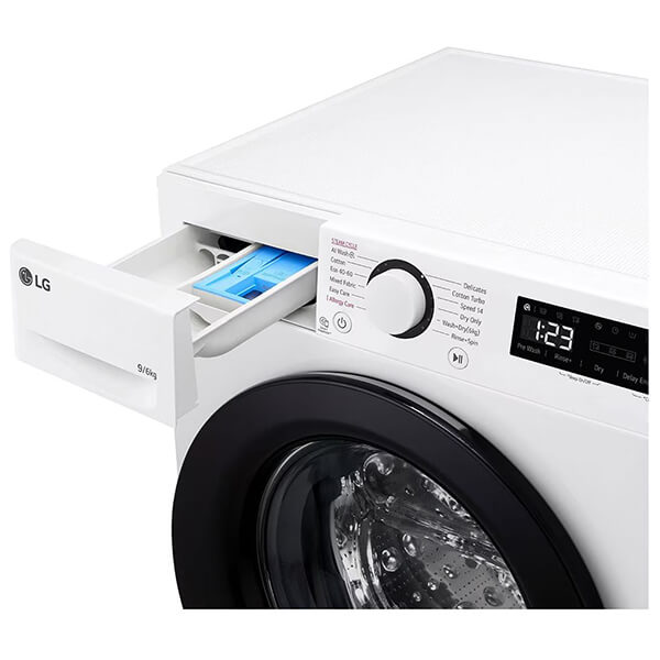 Πλυντήριο και στεγνωτήριο LG. -Βασισμένο σε έναν μεγάλο όγκο δεδομένων συσσωρευμένης εμπειρίας πλύσεων, το AI DD παρέχει την βέλτιστη κίνηση πλύσης για την καλύτερη φροντίδα των ρούχων σας. Το AI DD ανιχνεύει όχι μόνο το βάρος, αλλά και την απαλότητα του υφάσματος, και επιλέγει αυτόματα τις βέλτιστες κινήσεις για το ύφασμα. -Με την τεχνολογία LG Steam εξαλείφεται το 99,9% των αλλεργιογόνων, όπως τα ακάρεα σκόνης που μπορούν να προκαλέσουν αλλεργίες ή αναπνευστικά προβλήματα. -Κομψή πόρτα από ανθεκτικό, ενισχυμένο γυαλί και ανθεκτικός κάδος από ανοξείδωτο χάλυβα που πληροί τα απαραίτητα επίπεδα υγιεινής. Χαρακτηριστικά Τύπος: Πλυντήριο/Στεγνωτήριο Ρούχων Eμπρόσθιας Φόρτωσης.Χωρητικότητα: πλύση 9 kg / στέγνωμα 6 kg.Κλάση Ενεργειακής Απόδοσης: D.Μοτέρ: Inverter Direct Drive.Στροφές: 1400 rpm.Kατανάλωση ενέργειας ανά 100 κύκλους (Πλύση Και Στέγνωμα): 308 kWh.Kατανάλωση ενέργειας ανά 100 κύκλους (Πλύση): 45 kwh.Kατανάλωση νερού ανά κύκλο (Πλύση Και Στέγνωμα): 90 lt.Kατανάλωση νερού ανά κύκλο (Πλύση): 50 lt.Εκπομπές αερομεταφερόμενου ακουστικού θορύβου (φάση στυψίματος): 71 dBA.Θερμοκρασίες: Κρύο/20/30/40/60/95?.Τύπος Οθόνης: LED, αφής.Προγράμματα: Βαμβακερά, Eco 40-60, Μεικτά, Συνθετικά, Ευαίσθητα, Γρήγορο Πρόγραμμα 14', Πλύση + Στέγνωμα, Φροντίδα αλλεργιών.Επιπλέον Επιλογές: Πρόπλυση, Επέκταση κύκλου, Κλείδωμα για παιδιά, Καθαρισμός Κάδου, Ενεργοποίηση / απενεργοποίηση βομβητή.Έξυπνες Λειτουργείες: Smart Diagnosis (Για γρήγορη διάγνωση βλαβών).Διαστάσεις (ΠxBxY): 600 x 565 x 850 mm.Βάρος: 70 kg.Εγγύηση: 2 χρόνια.