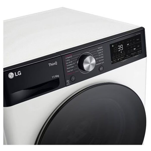 Δελτίο προιόντοςΠλυντήριο/Στεγνωτήριο της LG με χωρητικότητα 11/6 kg. Διαθέτει έξυπνη φροντίδα (AI DD) η οποία προσφέρει 18% μεγαλύτερη προστασία ρούχου. -Το AI DD παρέχει την βέλτιστη κίνηση πλύσης για την καλύτερη φροντίδα των ρούχων σας. -Το AI DD ανιχνεύει όχι μόνο το βάρος, αλλά και την απαλότητα του υφάσματος, και επιλέγει αυτόματα τις βέλτιστες κινήσεις για το ύφασμα. -Το TurboWash360? δίνει τη δυνατότητα να πλένετε τα ρούχα σας κανονικά σε μόλις 39 λεπτά, παρέχοντας ακόμα μεγαλύτερη προστασία στα υφάσματα. Ο ψεκασμός από τα πολλαπλά 3D ακροφύσια 4 κατευθύνσεων φθάνει σε κάθε σημείο των ρούχων σας. -Η τεχνολογία LG Steam αφαιρεί το 99,9% των αλλεργιογόνων, όπως τα ακάρεα σκόνης που προκαλούν αλλεργίες ή αναπνευστικά προβλήματα. -Το συνδυασμένο πλυντήριο-στεγνωτήριο της LG είναι μια από τις κορυφαίες τεχνολογίες οικιακών συσκευών της εταιρείας. Με τη βοήθειά του εξοικονομείτε χώρο στο σπίτι σας, αλλά και πολύτιμο χρόνο για να ασχοληθείτε με την οικογένειά σας. -Κομψή πόρτα από ανθεκτικό, ενισχυμένο γυαλί και ανθεκτικό ανυψωτικό κάδου από ανοξείδωτο χάλυβα που πληροί τα απαραίτητα επίπεδα υγιεινής. -Χάρη στην τεχνολογία LG ThinQ, μπορείτε να ελέγχετε το πλυντήριο-στεγνωτήριο από απόσταση και να κατεβάζετε πρόσθετα προγράμματα πλύσης από την εφαρμογή. Μπορείτε εύκολα να συνδεθείτε στη συσκευή μέσω Wi-Fi και να αποκτήσετε πρόσβαση στις πιο ενημερωμένες εξελίξεις. Χαρακτηριστικά Είδος: Πλυντήριο/Στεγνωτήριο.Τύπος Φόρτωσης: Eμπρόσθιας Φόρτωσης.Τοποθέτηση: Ελεύθερο.Χωρητικότητα πλύσης: 11 kg.Χωρητικότητα στεγνώματος: 6 kg.Τάξη Ενεργειακής Απόδοσης: D.Μοτέρ: Inverter Direct Drive.Στροφές: 1400/1200/1000/800/400/No Spin.Kατανάλωση ενέργειας ανά 100 κύκλους (Πλύση): 47 kWh.Kατανάλωση νερού ανά κύκλο (Πλύση): 52 lt.Kατανάλωση ενέργειας ανά 100 κύκλους (Πλύση κα στέγνωμα): 308 kWh.Kατανάλωση νερού ανά κύκλο (Πλύση κα στέγνωμα): 90 lt.Εκπομπές αερομεταφερόμενου ακουστικού θορύβου (φάση στυψίματος): 71 dBA.Θερμοκρασίες: Κρύο/20/30/40/60/95?.Τύπος Οθόνης: LED, αφής.Σύνδεση: Wi-Fi.Έξυπνα χαρακτηριστικά: Τεχνολογία LG ThinQ, Απομακρυσμένη εκκίνηση, Smart Diagnosis, Κατέβασμα προγραμμάτων.Προγράμματα: Βαμβακερά, Eco 40-60, Συνθετικά, TurboWash 39, Μεικτά, Φροντίδα Αλλεργιών (πλύση), Γρήγoρo 14', Eυαίσθητα, Ξέβγαλμα+Στέγνωμα.Επιπλέον Επιλογές: Πρόπλυση, Τεχνολογία Ατμού, Χρονοκαθυστέρηση, TurboWash, Κλείδωμα για παιδιά, Ξέβγαλμα, Ενεργοποίηση / απενεργοποίηση βομβητή.Υπόλοιπα χαρακτηριστικά: Τεχνολογία AI DD, Τεχνολογία Steam, TurboWash360?, Ηχητική ειδοποίηση στο τέλος του προγράμματος, Αναγνώριση Φορτίου, Τύμπανο από Ανοξείδωτο Χάλυβα.Διαστάσεις (ΠxYxΒ): 600 x 850 x 565 mm.Βάρος: 70 kg.Εγγύηση: 2 χρόνια.