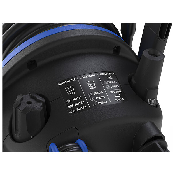 • Eύκολη αποθήκευση του λάστιχου, της χειρολαβής και των ακροφυσίων.