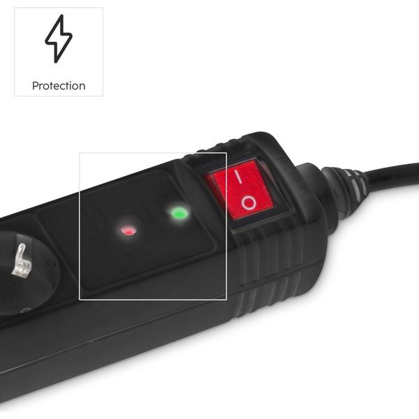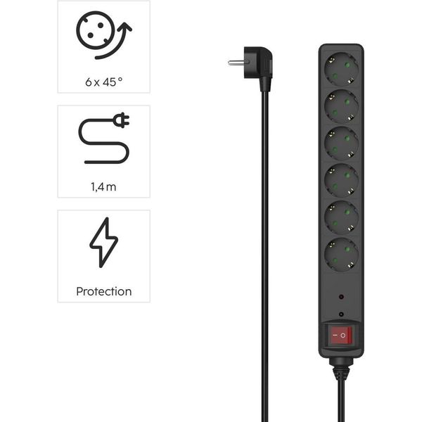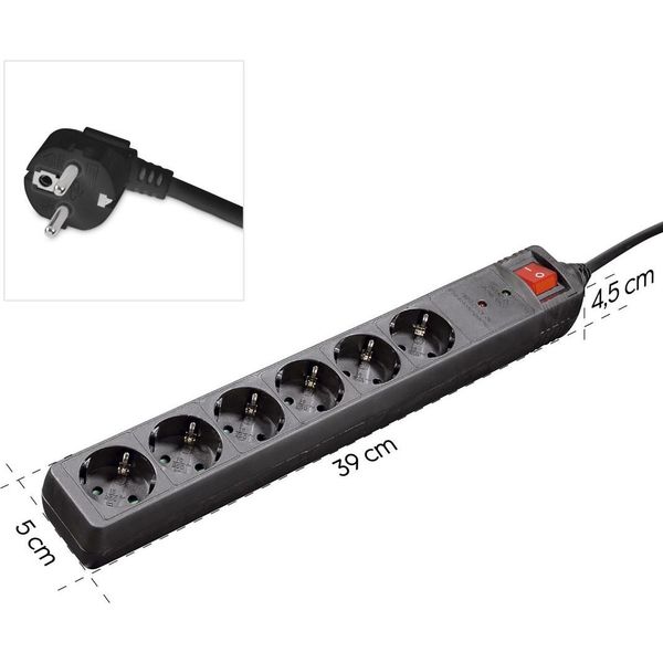 Πολύμπριζο ασφαλείας από τη HAMA με 6 υποδοχές και προστασία υπέρτασης, ιδανικό για χρήση στο σπίτι ή στο γραφείο. - Προστατεύει τις συνδεδεμένες συσκευές από υπέρταση και αιχμές τάσης, προσφέροντας ασφάλεια και αξιοπιστία. - Διαθέτει διακόπτη On/Off, εργονομικά τοποθετημένες υποδοχές με κλίση 45° και παιδική προστασία για ασφαλή χρήση σε κάθε περιβάλλον. - Ενσωματώνει δύο οπτικές ενδείξεις: πράσινο LED για έλεγχο γείωσης και κόκκινο LED για ενεργή προστασία υπέρτασης. Αν η αντίστοιχη ένδειξη δεν ανάψει, δεν συνιστάται η χρήση μέχρι να αποκατασταθεί το πρόβλημα από εξειδικευμένο τεχνικό.