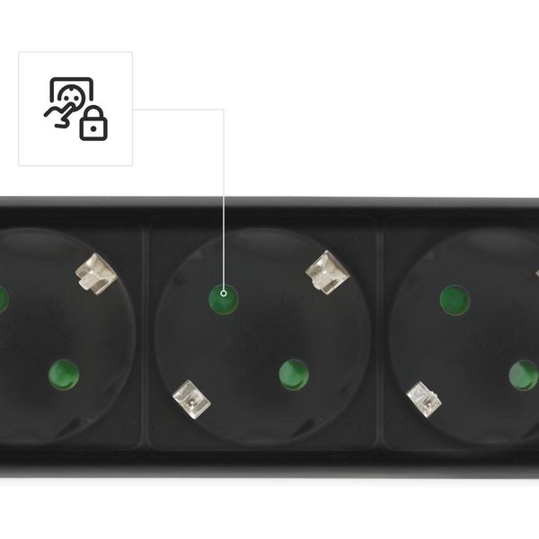 Τύπος: Πολύμπριζο με προστασία υπέρτασης. Αριθμός υποδοχών: 6. Τύπος επαφών: Schuko, 45° γωνία. Μήκος καλωδίου: 1.4 m. Μέγιστο φορτίο: 3680W / 16A. Τάση λειτουργίας: 250 V. Προστασία υπέρτασης: Ναι. Διακόπτης On/Off: Ναι. Παιδική προστασία: Ναι. Οπτική ένδειξη: Ναι (Γείωση & Προστασία). Χρήση: Εσωτερικού χώρου (Οικιακή/Επαγγελματική). Υλικό κατασκευής: Συνθετικό υλικό. Διαστάσεις: 4.7 x 4 x 35.7 cm. Διατομή καλωδίου: 3 x 1.5 mm². Χρώμα: Μαύρο. Βάρος: 0.524 kg. Εγγύηση: 2 Χρόνια. DOA 7 ημερών