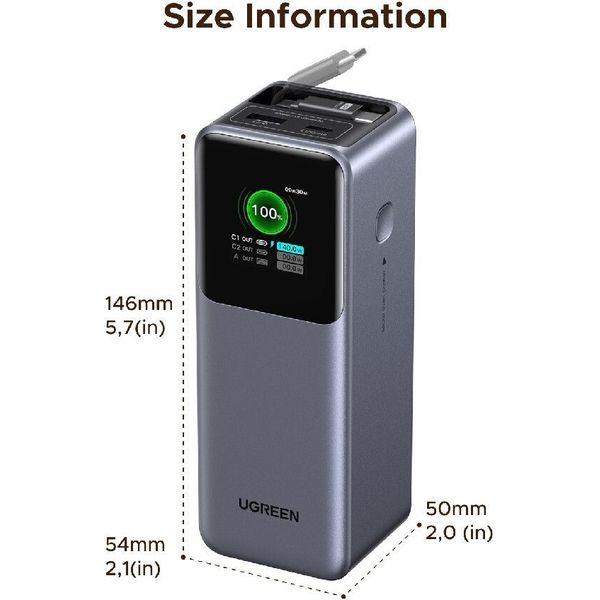 > > > POWER BANK 20000MAH PD 165W UGREEN PB726 55987B 2 ΘΕΣΕΩΝ, ΜΕ ΚΑΛΩΔΙO USB-C 240W ΓΚΡΙ