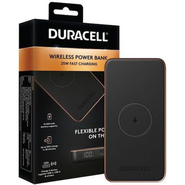 POWER BANK DURACELL CORE 10 PD 25W 10000MAH & WIRELESS CHARGING 15W BLACK (TEL.237018)