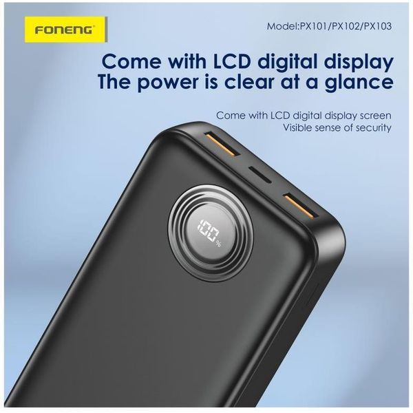 > > > POWER BANK FONENG PX103 PD 22.5W 30000MAH WITH 2 USB A & 1 USB C PORTS BLACK