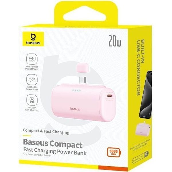 POWERBANK BASEUS COMPACT USB-C VERSION 5000MAH 20W PD PINK P10068306413-00 (TEL.235965)