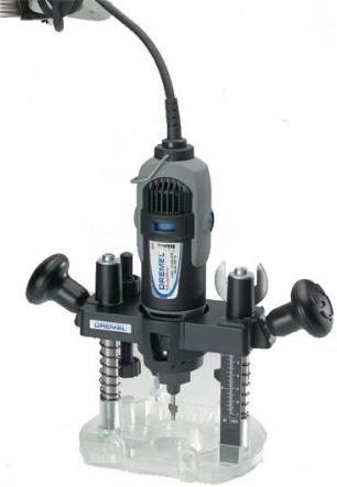 335 DREMEL Προσάρτημα βυθιζόμενης φρέζας. Μετατρέπει το εργαλείο σας Dremel σε μια βυθιζόμενη φρέζα για το φρεζάρισμα κύκλων, για εργασίες επιγραφών και σκαλισμάτων, διακοσμητικές ακμές και για φρεζάρισμα παράλληλα σε μια ακμή. Ασφάλιση βυθίσματος στη λαβή - απλή στροφή της λαβής για κλείδωμα / ξεκλείδωμα. Δύο όρια βάθους τρυπήματος για γρήγορη και ικανοποιητική ρύθμιση του βάθους. Οδηγός ακμής και κυκλικός οδηγός για φρεζάρισμα ευθείων γραμμών και άψογων κύκλων. Σετ δακτύλιου οδηγού για φρεζάρισμα γραμμάτων και πρότυπων δειγμάτων.