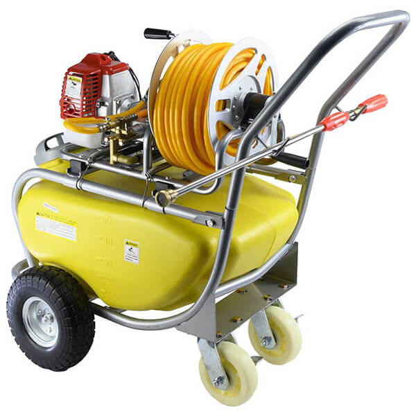 Ψεκαστικο βενζινης 26cc NAKAYAMA PRO NS5210. -Το ψεκαστικό NS5210 της NAKAYAMA PRO αποτελεί την ιδανική επιλογή για εξαιρετικά απαιτητικές εργασίες ψεκασμού. -Διαθέτει ρόδες για εύκολη μεταφορά, πρακτική ανέμη και μακρύ λάστιχο O 8.5mm, για πλήρη κάλυψη μεγάλων εκτάσεων και απρόσκοπτη λειτουργία ψεκασμού σε κάθε περίσταση. -Χάρη στην στιβαρή, compact κατασκευή του, το NS5210 είναι η πιο ολοκληρωμένη και αξιόπιστη λύση σε κάθε επαγγελματική ανάγκη, όπως στενά περάσματα (πχ. θερμοκήπια) ή καλλιέργειες. -Με ορειχάλκινη αντλία βαρέως τύπου, πίεση αντλίας 25bar, πανίσχυρο δίχρονο κινητήρα 26cc και μεγάλο δοχείο 50lt, με σύστημα εύκολου καθαρισμού, προσφέρει μέγιστη αυτονομία και απόδοση. Κινητήρας: Δίχρονος αερόψυκτος.Κυβισμός: 26cc.Μέγιστη παροχή: 8 Lt/H.Μέγιστη πίεση: 25 bar.Χωρητικότητα δοχείου: 50Lt.Μήκος λάστιχου: 30m.Διάμετρος λάστιχου: 8.5mm.Εγγύηση: 2 χρόνια.