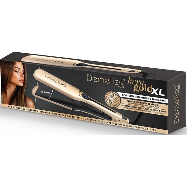 Ψηφιακή πρέσα από τη DEMELISS με XL κεραμικές πλάκες με επίστρωση τουρμαλίνης, δυνατότητα ρύθμισης θερμοκρασίας από 100?C έως 230?C (σε 14 επίπεδα) και οθόνη LED με ψηφιακές ενδείξεις για ακριβή έλεγχο της θερμοκρασίας! Είναι ιδανική για την φροντίδα όλων των τύπων μαλλιών και διακρίνεται για την ελαφριά, εργονομική κατασκευή που προσφέρει εύκολο και ξεκούραστο styling. Διαθέτει σύστημα ανάρτησης, με αποτέλεσμα οι θερμαινόμενες επιφάνειες να εφαρμόζουν άψογα σε οποιοδήποτε τύπο και όγκο μαλλιού και περιστρεφόμενο καλώδιο 360° με κρίκο για κρέμασμα για ακόμα μεγαλύτερη ευελιξία κατά τη χρήση.