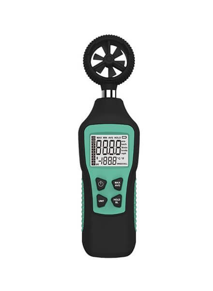 Μετρητής ανέμου με ψηφιακή οθόνη. Ιδανικό για μετρήσεις σε βιομηχανικές εφαρμογές, στην ναυτιλία, σε εφαρμογές εξοικονόμησης ενέργειας, σε εγκαταστάσεις εξαερισμού, στα σπορ κλπ. Μονάδες: Km/h, knots/, ft/sec /miles/h.Εύρος μέτρησης ταχύτητας ανέμου: 0.8 έως 30m/sec (ακρίβεια ±5%+0.5m/s).Ενδειξη θερμοκρασίας: -10° έως 60° C (ακρίβεια 2%).Τροφοδοσία: 1 μπαταρία 9V.Διαστάσεις: 192 x 53.8 x 35 mm.Βάρος: 210 gr.Eγγύηση: 2 χρόνια.Εγγύηση: 2 χρόνια.
