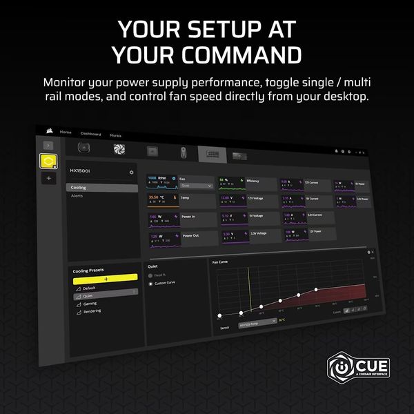 Το CORSAIR HX1500i είναι ένα κορυφαίο, πλήρως modular τροφοδοτικό 1500W με πιστοποίηση 80 PLUS Platinum και πλήρη συμβατότητα με τις πιο απαιτητικές gaming και επαγγελματικές διατάξεις. Με υποστήριξη για το πρότυπο ATX 3.1 και PCIe 5.1, έρχεται έτοιμο για τις επόμενες γενιές GPU, όπως οι GeForce RTX 50 Series. Διαθέτει διπλά καλώδια 12V-2x6, 100% ιαπωνικούς ηλεκτρολυτικούς πυκνωτές και ανεμιστήρα 140mm με Zero RPM Mode για αθόρυβη λειτουργία σε χαμηλά φορτία. Μέσα από το λογισμικό CORSAIR iCUE μπορείς να παρακολουθείς την κατανάλωση ρεύματος, να αλλάζεις το fan profile, ή να ελέγχεις τη λειτουργία single/multi rail. Η ποιότητα κατασκευής και η μακροχρόνια αξιοπιστία καθιστούν το HX1500i ιδανική επιλογή για high-end builds και επαγγελματικά workstations. - Ισχύς: 1500W συνεχόμενη.
