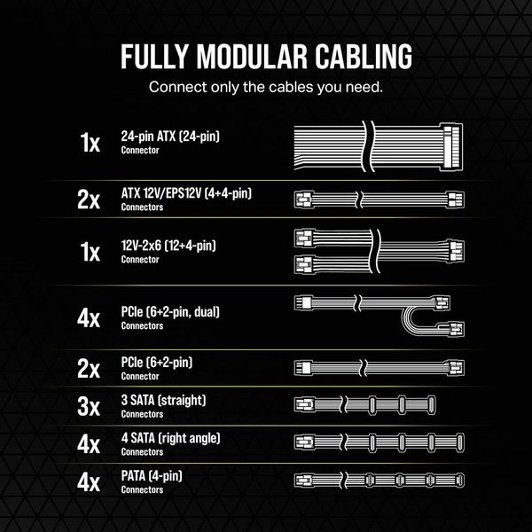 - Συμπεριλαμβανόμενα καλώδια: 12V-2x6 για GPU, SATA, PATA, EPS, PCIe.