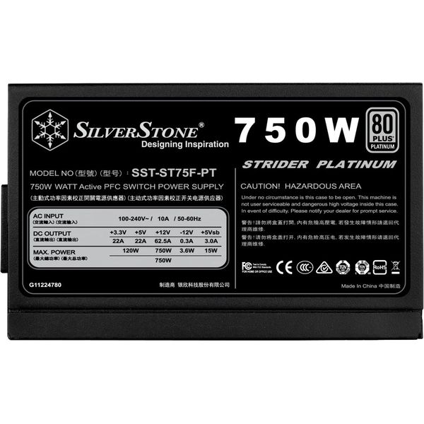Η SilverStone ST75F-PT είναι μια κορυφαία τροφοδοτική μονάδα 750W με πιστοποίηση 80 PLUS Platinum, εξασφαλίζοντας υψηλή ενεργειακή αποδοτικότητα και εξαιρετική απόδοση. - Παράγει συνεχώς ισχύ 750W με θερμοκρασία λειτουργίας 40°C για 24/7 χρήση, κάνοντάς την ιδανική για απαιτητικά συστήματα και χρήστες που αναζητούν αξιοπιστία. - Η μονάδα διαθέτει πιστοποίηση 80 PLUS Platinum για ελάχιστη απώλεια ενέργειας, προσφέροντας εξαιρετική αποδοτικότητα και οικονομία στην ενέργεια. - Ο ισχυρός +12V rail εξασφαλίζει άριστη απόδοση, επιτρέποντας την αναβάθμιση με σύγχρονα και απαιτητικά εξαρτήματα. - Διαθέτει 100% αποσπώμενα καλώδια για ευκολία στην εγκατάσταση και διαχείριση καλωδίων. - Η αθόρυβη λειτουργία του ανεμιστήρα 120mm με λειτουργία ημιαναστολής εξασφαλίζει ελάχιστο θόρυβο, ακόμα και σε πλήρες φορτίο.