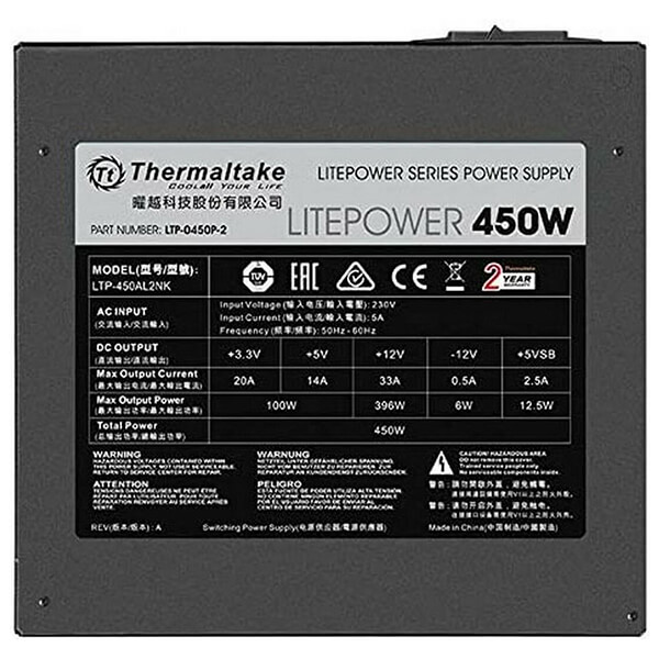 Το Thermaltake Litepower GEN2 450W PSU είναι μια εξαιρετική επιλογή για βασικά desktop συστήματα που απαιτούν χαμηλή κατανάλωση ενέργειας, υψηλή αξιοπιστία και χαμηλό επίπεδο θορύβου. Με τη συμμόρφωση στο πρότυπο ATX 12V V2.3 και τη χρήση αφιερωμένου +12V rail, εγγυάται συμβατότητα με τις τελευταίες επιτραπέζιες συσκευές. Παράλληλα, με λειτουργίες προστασίας από υπέρταση, υπερφόρτωση και βραχυκύκλωμα, το Litepower GEN2 προσφέρει αξιοπιστία και απόδοση σε προσιτή τιμή. Μάρκα: Thermaltake Κωδικός Προϊόντος: PS-LTP-0450NPCNAU-2 Τυπική Συμμόρφωση: ATX 12V V2.3 Ισχύς: 450W Λειτουργίες Προστασίας: Υπέρταση (OVP), Υπερφόρτωση (OPP), Βραχυκύκλωμα (SCP) Διαστάσεις: 50.5 x 39 x 23 cm Βάρος: 1.83 kgΕγγύηση: 3 χρόνια. DOA 7 ημερών