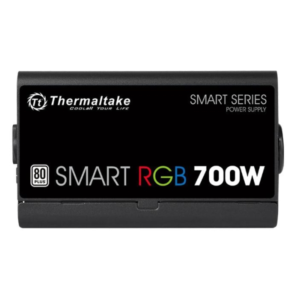 Η Thermaltake, ως ο πρωτοπόρος που ενσωματώνει RGB leds σε τροφοδοτικά, προσφέρει τη σειρά Thermaltake Smart RGB, η οποία έρχεται με ένα προεγκατεστημένο RGB fan hub 256 χρωμάτων με 15 λειτουργίες φωτισμού για να διαλέξετε και ενσωματωμένη μνήμη. Με πιστοποίηση Standard PLUS, η σειρά Smart RGB ενσωματώνει υλικά υψηλής ποιότητας, κορυφαία τεχνολογία και εξαιρετική ροή αέρα κρατώντας εξαιρετικά χαμηλό επίπεδο θορύβου. Ισχύς: 700 W.Τύπος τροφοδοτικού: Intel ATX 12V 2.3.PFC: Active PFC.Τάση λειτουργίας: 100Vac - 240Vac.Ένταση ρεύματος: 12A max.Συχνότητα λειτουργίας: 50-60 Hz.Τύπος ανεμιστήρα: 120mm 1800 R.P.M. ± 10%.Σήμα ορθής εκκίνησης (PowerGood Signal): 100-500 msec.Χρόνος αναμονής: 16ms σε 60% φορτίο.Ποσοστό απόδοσης: 80-87% efficiency @ 20-100% φορτίο.MTBF: > 100.000 ώρες.Προστασία: OVP, OPP, SCP.Πιστοποιητικά ασφαλείας: CE/CB/TUV/ UL/ FCC/ EAC.Συνδέσεις: 1x MB 20+4pin, 1x CPU 12V 4+4pin, 6x SATA, 5x Molex, 1x FDD, 2x PCI-e 6+2pin.Διαστάσεις: 86mm x 150mm x 140mm.Εγγύηση: 5 χρόνια. DOA 7 ημερών