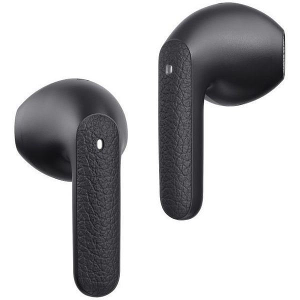QCY AIR DARK GREY SEMI-EAR TWS EARBUDS, QUAD MIC ENC MULTI-POINT CONNECTION, LEATHER GRAIN CASE (TEL.234953)