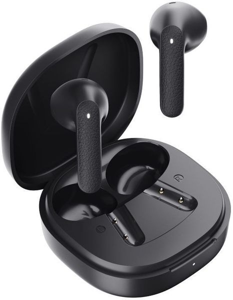 > > > QCY AIR DARK GREY SEMI-EAR TWS EARBUDS, QUAD MIC ENC MULTI-POINT CONNECTION, LEATHER GRAIN CASE