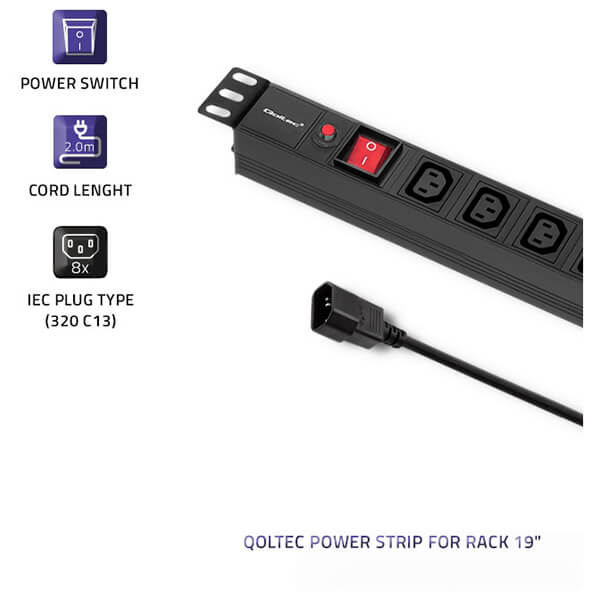 > > > QOLTEC POWER STRIP FOR RACK 19 1U 10A PDU CB 8XIEC C13 2M