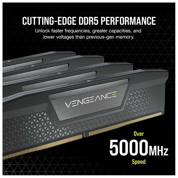 Μνήμη RAM Corsair Vengeance DDR5 η οποία θα σας επιτρέψει να επεκτείνετε τις δυνατότητες του συστήματός σας, ξεκλειδώνοντας ακόμα πιο γρήγορες συχνότητες, μεγαλύτερες χωρητικότητες και καλύτερη απόδοση.